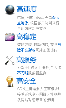 CDN云主机是幸福_第五职业最新推出的支持CDN加速的主机产品,主要支持云计算、云存储、云加速、云建站和云管理等功能。 CDN云主机优势说明 高速度:自动在电信、网通、移动、美国、香港等地机房建立镜像缓存服务器,根据访问客户来源,自动访问距离客户最快速服务器,镜像节点与数据中心之间采用BGP高速线路传输,不论客户端是什么网络,均可以全网高速访问。 高稳定:分布式集群架构,避免单点故障,在线率99.999% 。CDN镜像节点智能容错功能,自动切换到备用节点,即使某个或者多个节点死机或机房被封,也毫不影响! 高服务:CDN主机需要人工审核,只接受正规企业网站,杜绝垃圾网站对您带来的影响; 专用服务器,不与普通网站放在一起。专业团队,优先人工服务。个人用户请选择我司其他产品。 高安全:所有机房均采用正规电信机房,所有数据均支持在线备份,即使原硬盘损坏,也可以比较容易找回网站数据。 CDN云主机与传统虚拟主机功能对比 传统的虚拟主机都是单台服务器,一旦机器硬件损坏、IP被封、机房网络故障等,都将导致网站不能访问,严重的情况数据还无法及时取回,即使想换一家服务商也因为没有数据而无能为力。同时传统虚拟主机还存在跨网访问慢的问题,网通用户访问电信服务器速度慢等等... |